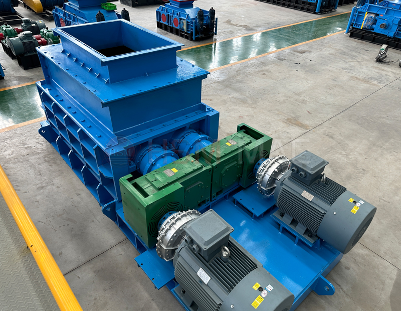 煤炭分級破碎機主要由兩個水平安裝且相互平行的齒輥組成,齒輥表面有破碎齒。齒輥通過傳動裝置(可以是單電機傳動或雙電機傳動)相互轉動,使得破碎齒產生沖擊剪切和沖擊拉伸的作用。待處理的瀝青再生料通過給料裝置均勻地進入破碎腔內。隨著齒輥的相對運動,瀝青再生料被夾持在齒輥之間,受到強大的破碎力作用。破碎過程中,剪切力沿著物料的薄弱易碎部位產生破碎力,使其迅速破碎成小顆粒。物料在兩個破碎輥之間以及與側壁的梳齒板之間排出,產品的出料尺寸受到這些間隙的控制。這樣可以避免產生過大顆粒,并且能夠迅速將已經達到合格粒度的物料排出,避免重復破碎,從而減小出粉率并增大產量。強力分級齒輥破碎機能夠對瀝青再生料進行破碎和分級,獲得符合要求的再生產品。